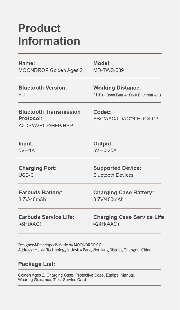 ขายหูฟังไร้สาย Moondrop Golden Ages2